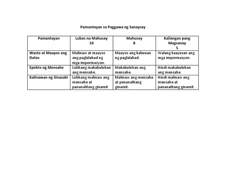 Rubrik Sa Pagsulat Ng Sanaysay Pdf