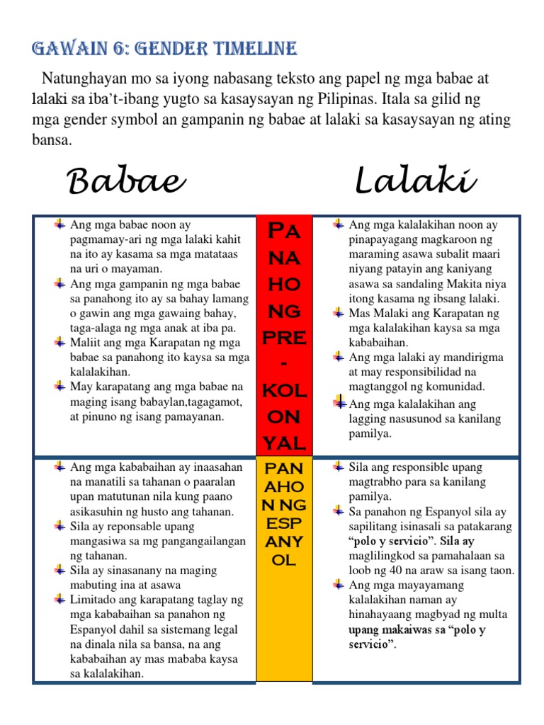 Naging madalian lang ang conventional war phase ng pananakop sa pilipinas ng amerikano. Bihira na ang seryosong ligawan. Gawain Sa Pagkatuto Bilang 4 P 30 Ap Gumuhit Ng Larawang Nagpapakita Ng Kalagayan Ng Kababaihan Noon Brainly In 3102019 Click here to get an answer to your question Ano-ano pagkakatulad at pagkakaiba sa konsepto ng progreso noon at ngayon.