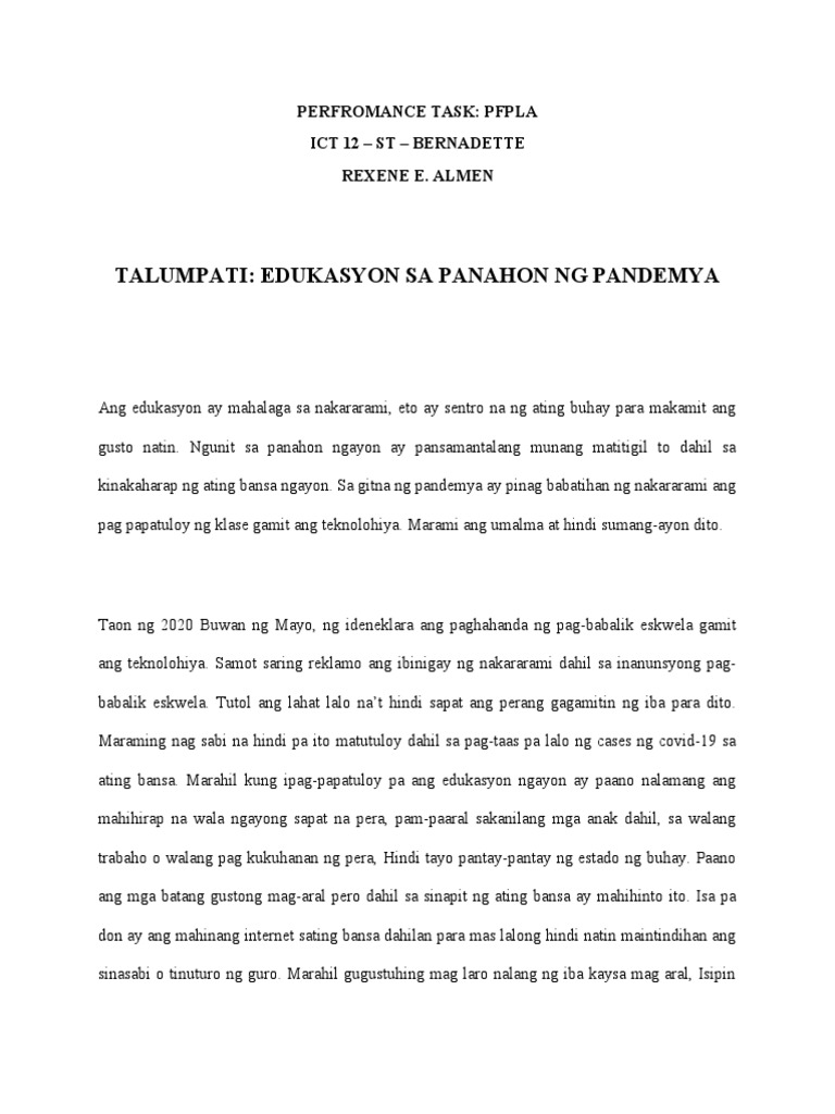Aking Talumpati Bilang Mag Docx Aking Talumpati Bilang Mag Aaral Tungkol Sa Pandemya Sherijan Khalid Magandang Araw Sa Inyong Lahat Tulad Ng Alam Niyo Course Hero