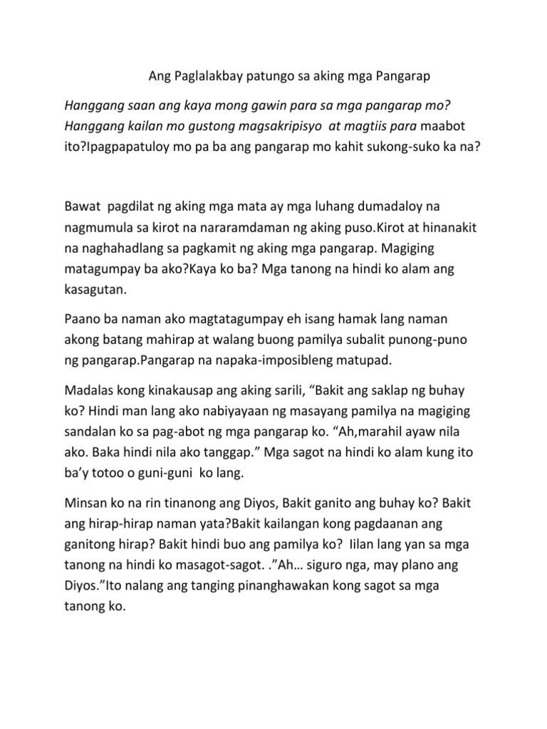 Ang Paglalakbay Patungo Sa Aking Mga Pangarap Pdf